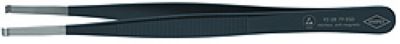 采用铬镍钢制作,具有不锈,防磁(18/10)和防酸的特点;采用ESD涂层,黑色,不反光,电阻为105欧姆;镊尖端采用亚光处理;其形状适合夹持直径1.0mm的圆柱形零件