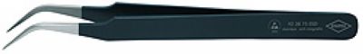 采用铬镍钢制作,具有不锈,防磁(18/10)和防酸的特点;采用ESD涂层,黑色,不反光,电阻为105欧姆;镊尖端采用亚光处理;月牙形状的镊头