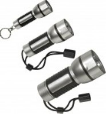 3 powerful torches with 1, 5 or 9 superbright LEDs. Twist-switch in the head of the torch. Rubberised handle. The right torch whatever the job. Waterproof. 1 x AA, 3 x AAA, 3 x AA batteries included.